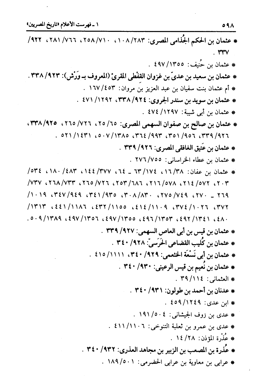 * عثمان بن الحكم الجذامى المصرى: 283/108، 710/258، 766/281، 922/337.