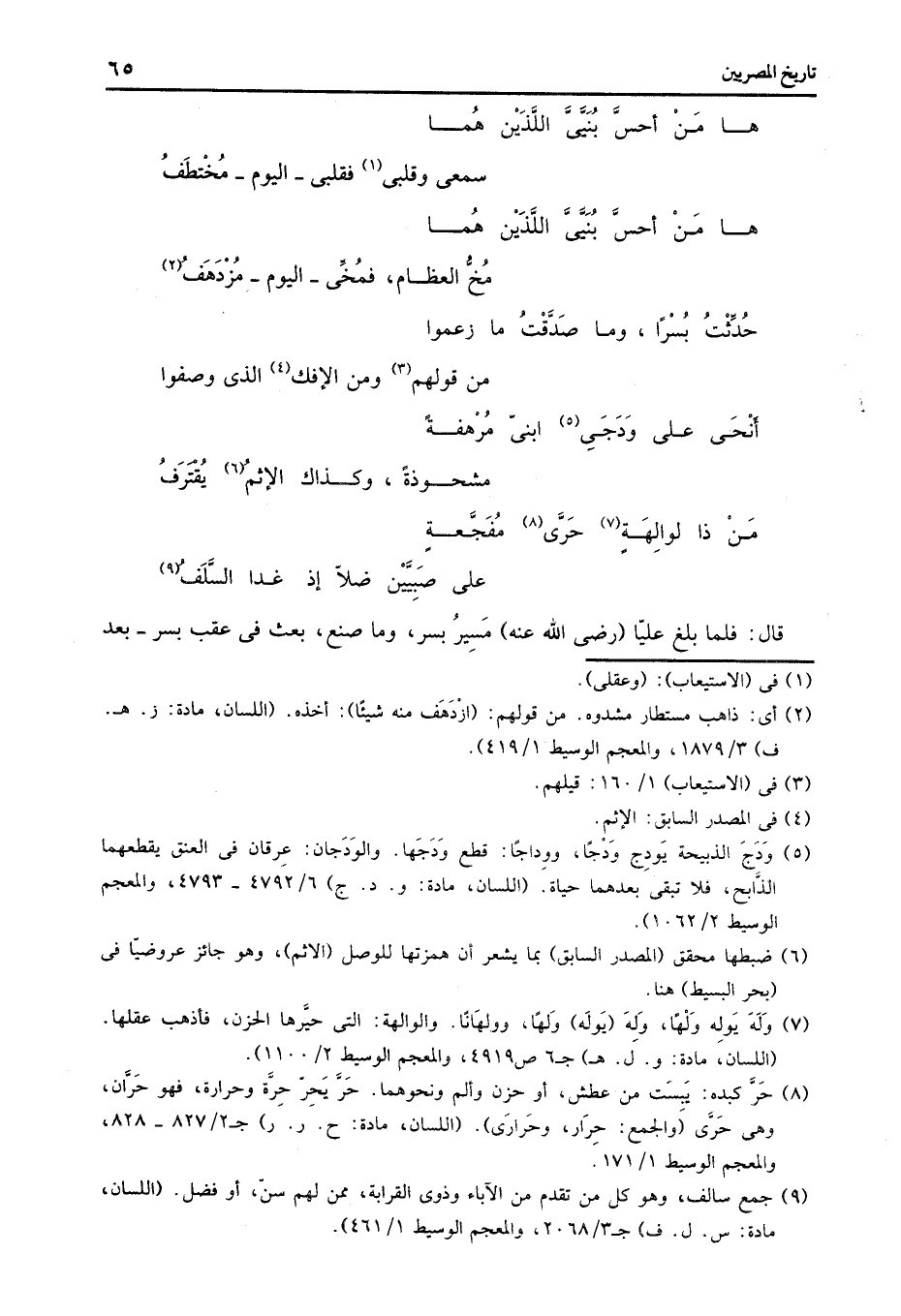 ها من أحسّ بنيّىّ اللّذين هما ... سمعى وقلبى «1» فقلبى- اليوم- مختطف