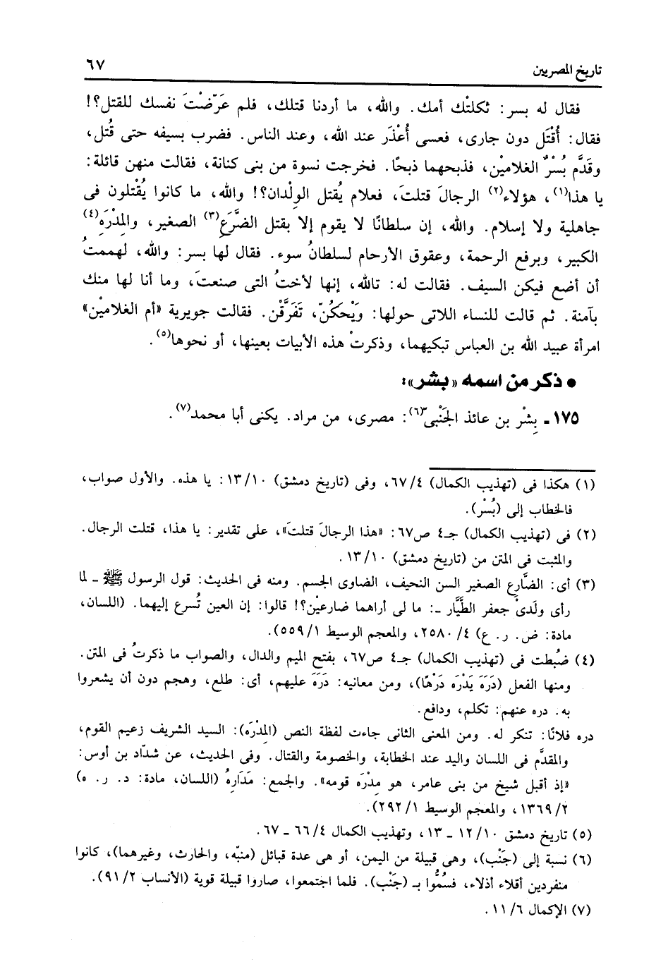 175- بشر بن عائذ الجنبىّ «6» : مصرى، من مراد. يكنى أبا محمد «7» .
