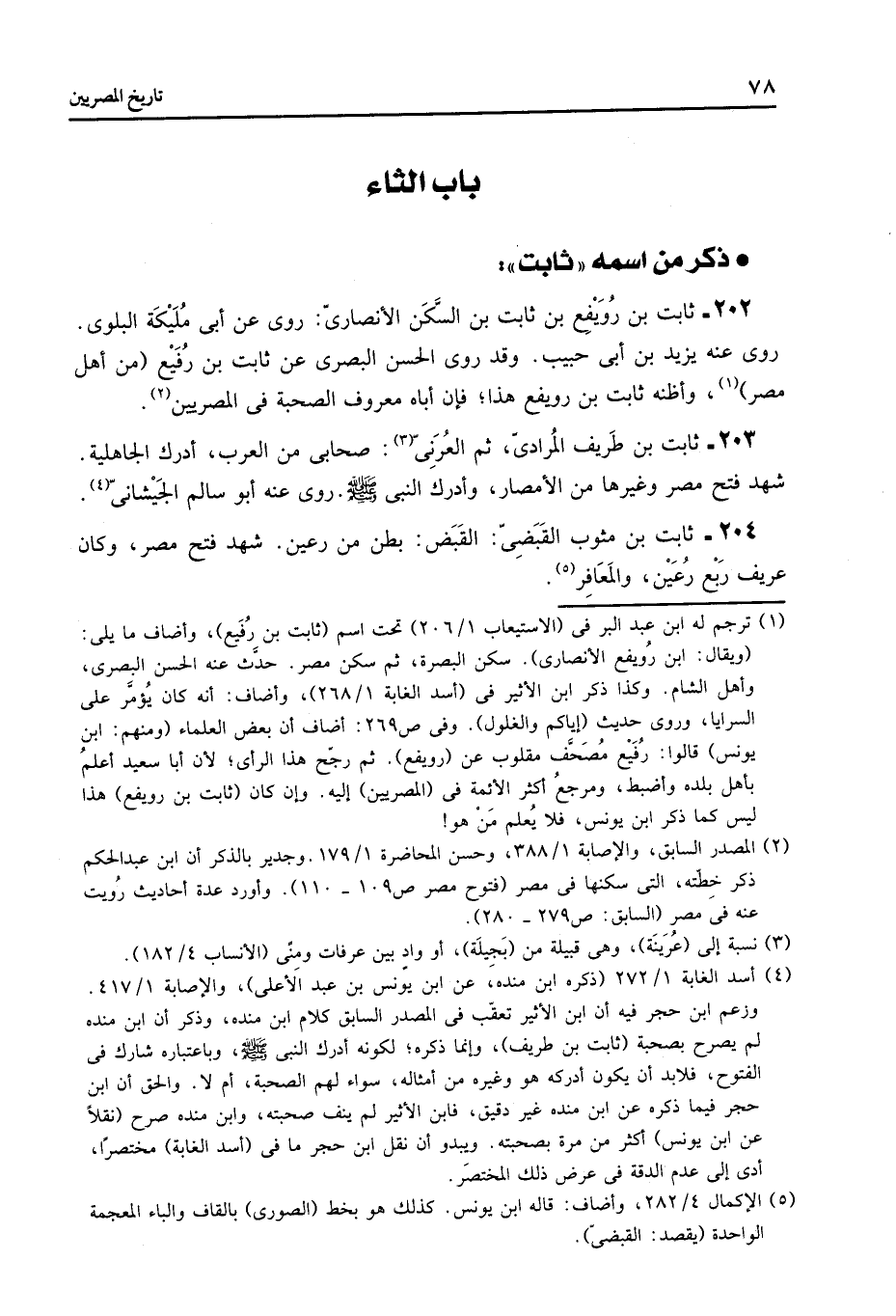 204- ثابت بن مثوب القبضىّ: القبض: بطن من رعين. شهد فتح مصر، وكان عريف ربع رعين، والمعافر «5» .