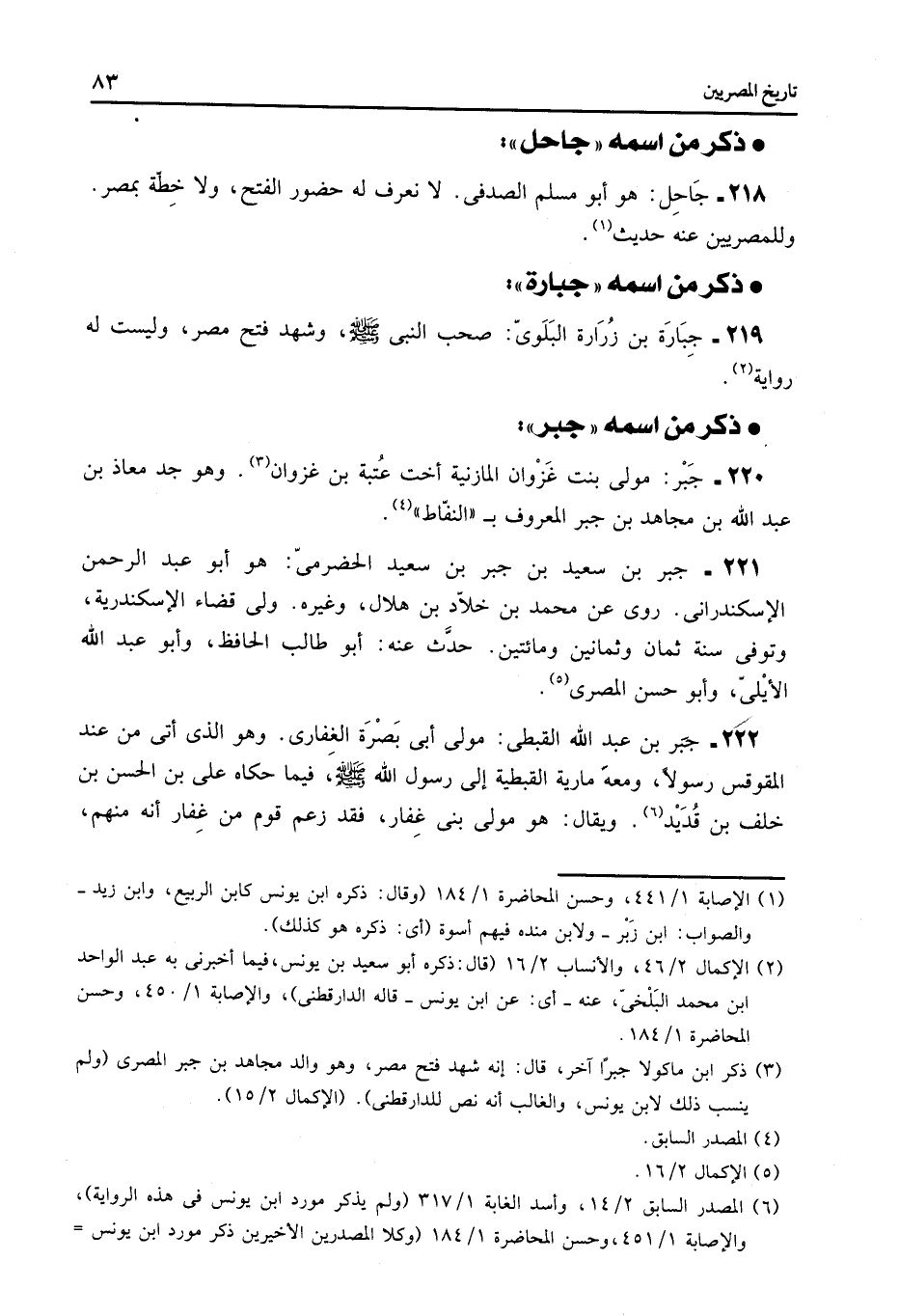 220- جبر: مولى بنت غزوان المازنية أخت عتبة بن غزوان «3» . وهو جد معاذ بن عبد الله بن مجاهد بن جبر المعروف ب «النفّاط» «4» .