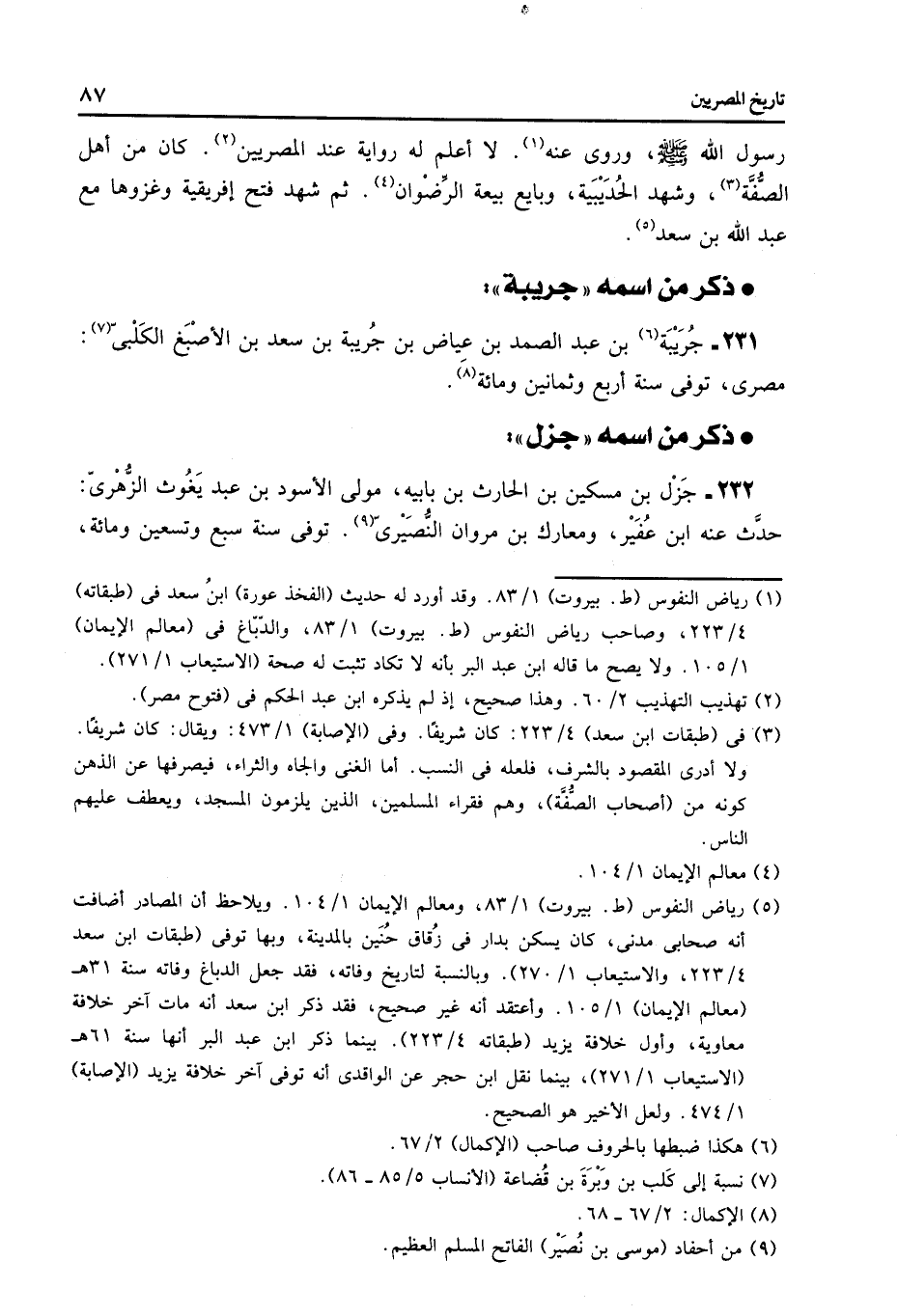 رسول الله صلى الله عليه وسلم، وروى عنه «1» . لا أعلم له رواية عند المصريين «2» . كان من أهل الصّفّة «3» ، وشهد الحديبية، وبايع بيعة الرّضوان «4» . ثم شهد فتح إفريقية وغزوها مع عبد الله بن سعد «5» .
