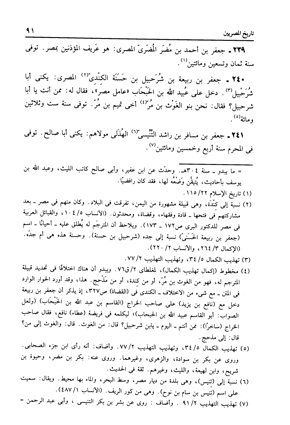 241- جعفر بن مسافر بن راشد التّنّيسىّ «6» الهذلى مولاهم: يكنى أبا صالح. توفى فى المحرم سنة أربع وخمسين ومائتين «7» .