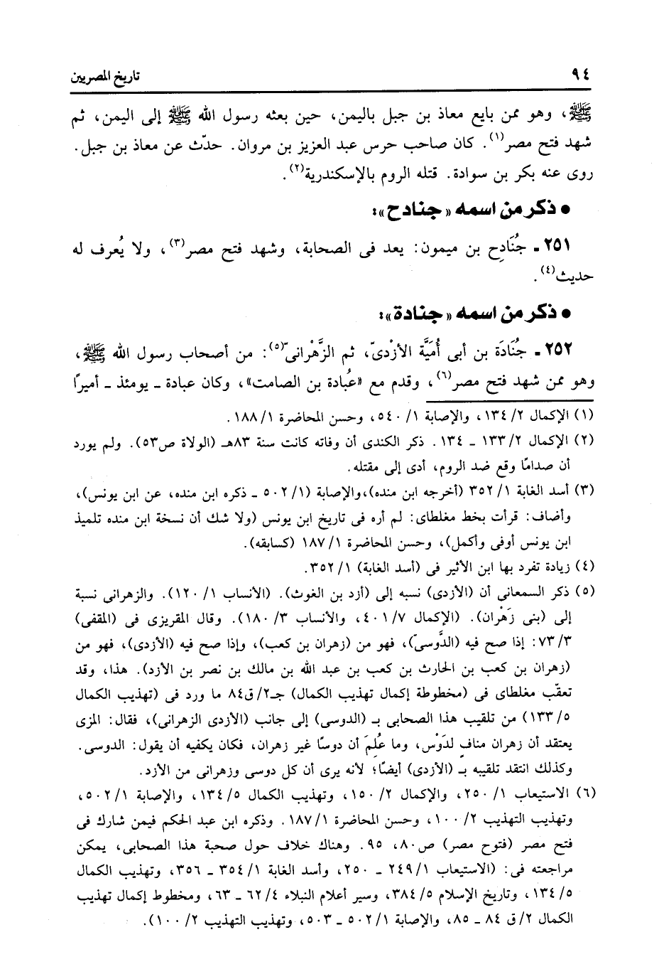 251- جنادح بن ميمون: يعد فى الصحابة، وشهد فتح مصر «3» ، ولا يعرف له حديث «4» .