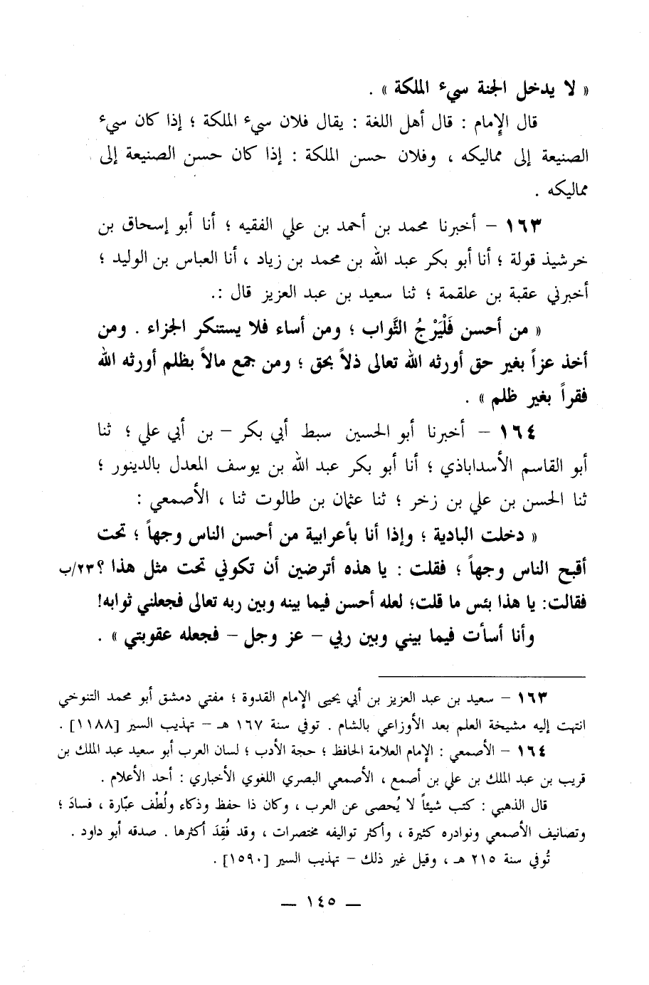 164- أخبرنا أبو الحسين سبط أبي بكر –بن أبي علي؛ ثنا أبو القاسم الأسداباذي؛ أنا أبو بكر عبد الله بن يوف المعدل بالدينور؛ ثنا الحسن بن علي بن زخر؛ ثنا عثمان بن طالوت ثنا الأصمعي: