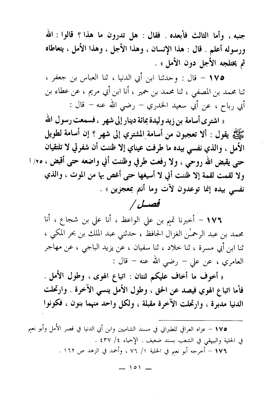175- قال: وحدثنا ابن أبي الدنيا، ثنا العباس بن جعفر، ثنا محمد بن المصفى، ثنا محمد بن حمير، أنا ابن أبي مريم، عن عطاء بن أبي رباح، عن أبي سعيد الخدري –رضي الله عنه- قال: