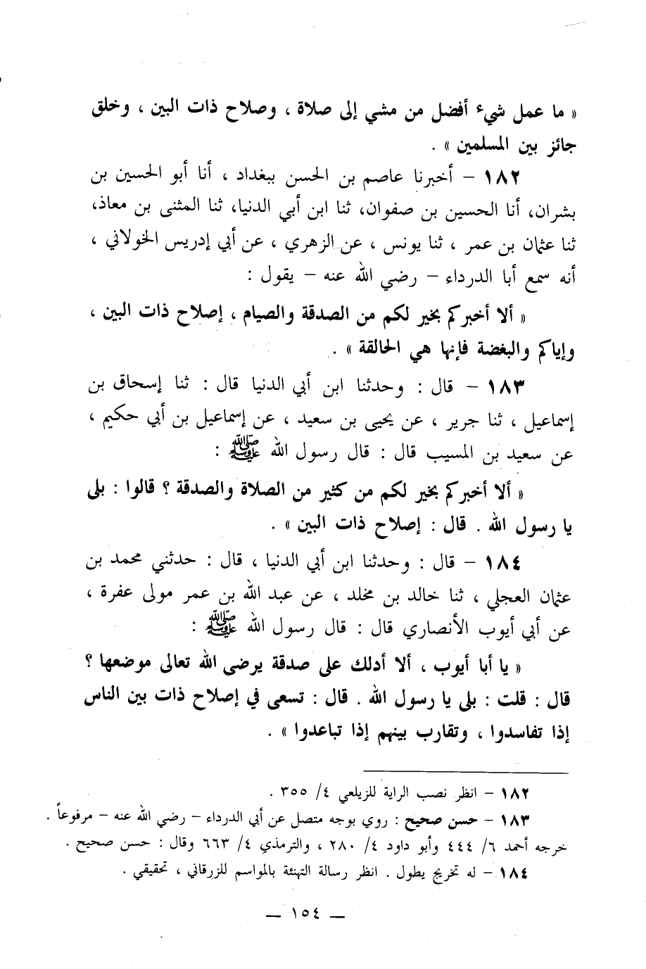 ((ألا أخبركم بخير لكم من كثير من الصلاة والصدقة؟ قالوا: بلى يا رسول الله. قال: إصلاح ذات البين)) .