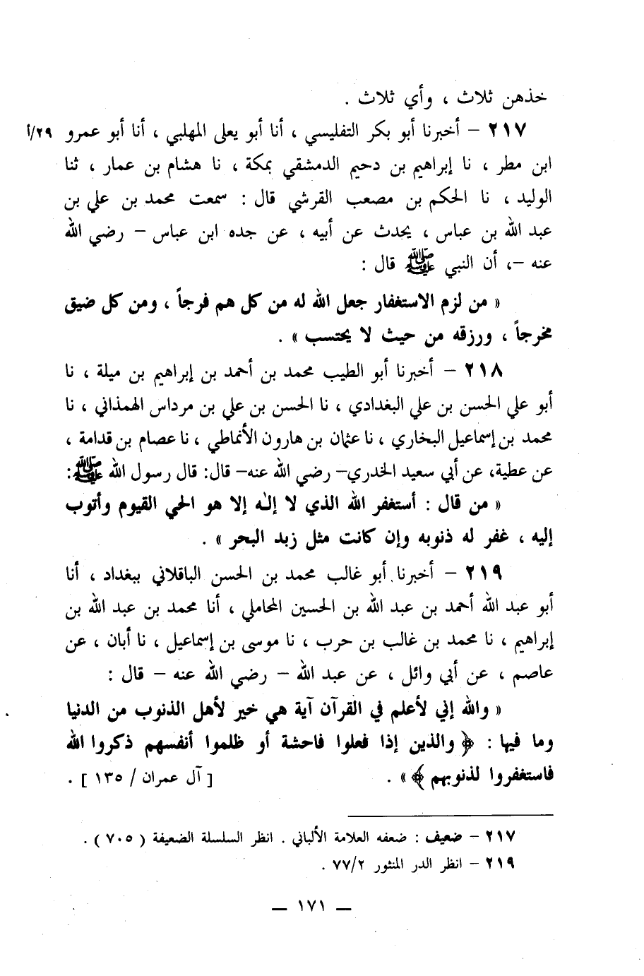 218- أخبرنا أبو الطيب محمد بن أحمد بن إبراهيم بن ميلة، نا أبو علي الحسن بن علي البغدادي، نا الحسن بن علي بن مرداس الهمذاني، نا محمد بن إسماعيل البخاري، نا عثمان بن هارون الأنماطي، نا عصام بن قدامة، عن عطية، عن أبي سعيد الخدري –رضي الله عنه- قال: قال رسول الله صلى الله عليه وسلم: