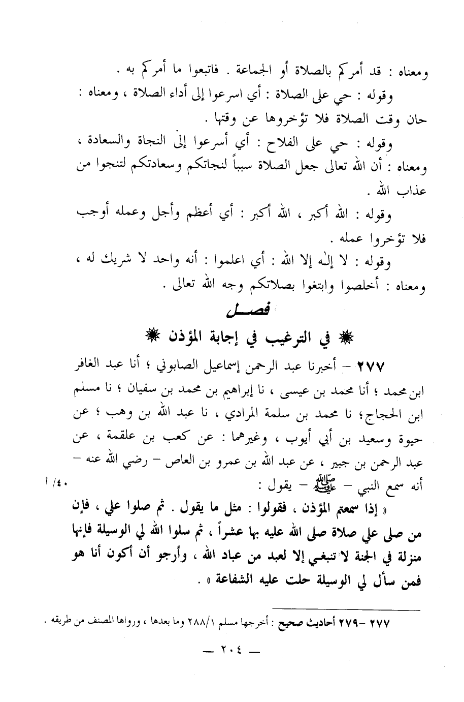 277- أخبرنا عبد الرحمن إسماعيل الصابوني؛ أنا عبد الغافر بن محمد؛ أنا محمد بن عيسى، نا إبراهيم بن محمد بن سفيان؛ نا مسلم بن الحجاج، نا محمد بن سلمة المرادي، نا عبد الله بن وهب؛ عن حيوة وسعيد بن أبي أيوب، وغيرهما: عن كعب بن علقمة، عن عبد الرحمن بن جبير، عن عبد الله بن عمرو بن العاص -رضي الله عنه- أنه سمع النبي صلى الله عليه وسلم يقول: