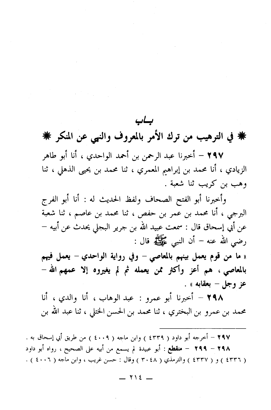 باب في الترهيب من ترك الأمر بالمعروف والنهي عن المنكر