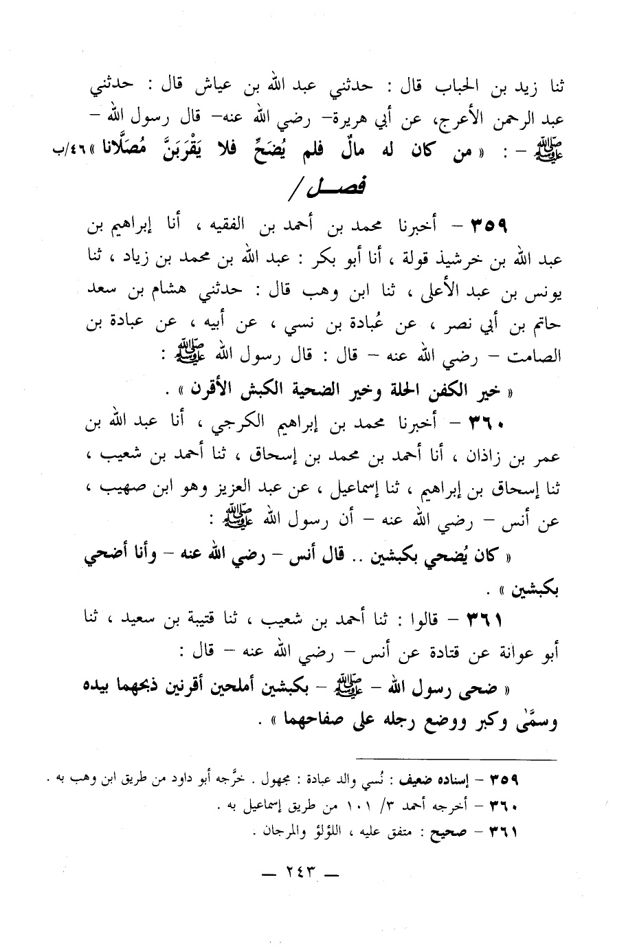 361- قالوا: ثنا أحمد بن شعيب، ثنا قتيبة بن سعيد، ثنا أبو عوانة عن قتادة عن أنس –رضي الله عنه- قال: