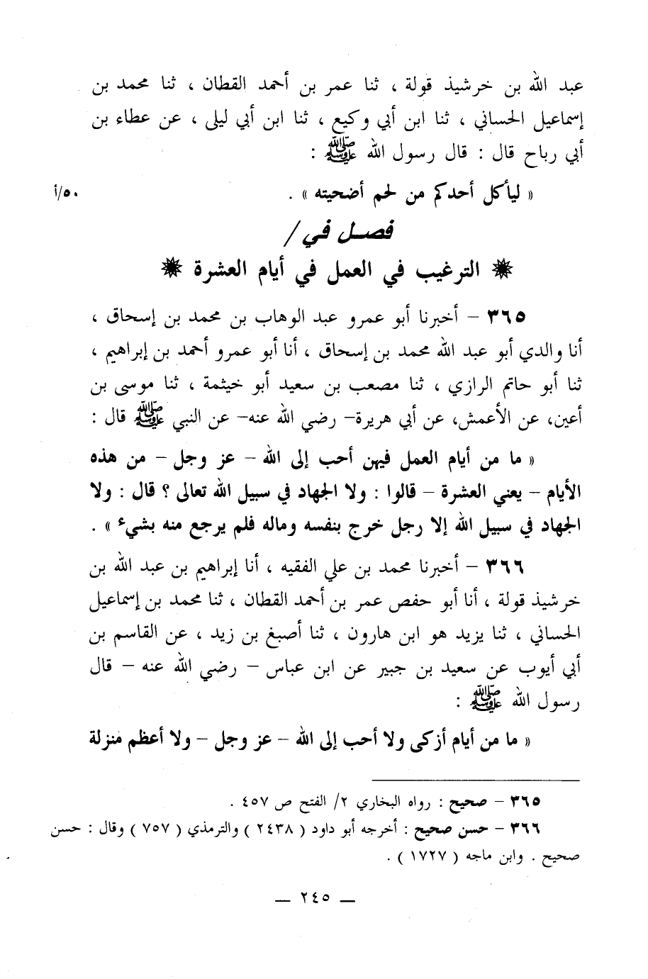 365- أخبرنا أبو عمرو عبد الوهاب بن محمد بن إسحاق، أنا والدي أبو عبد الله محمد بن إسحاق، أنا أبو عمرو أحمد بن إبراهيم، ثنا أبو حاتم الرازي، ثنا مصعب بن سعيد أبو خيثمة، ثنا موسى بن أعين، عن الأعمش، عن أبي هريرة –رضي الله عنه- عن النبي صلى الله عليه وسلم قال: