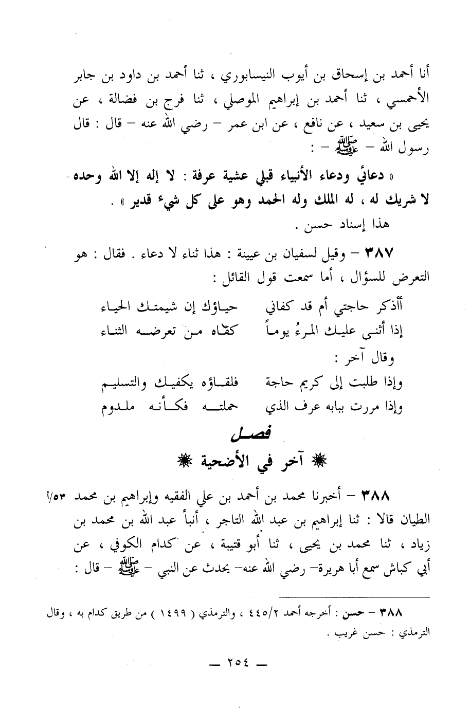 387- وقيل لسفيان بن عيينة: هذا ثناء لا دعاء. فقال: هو التعرض للسؤال، أما سمعت قول القائل: