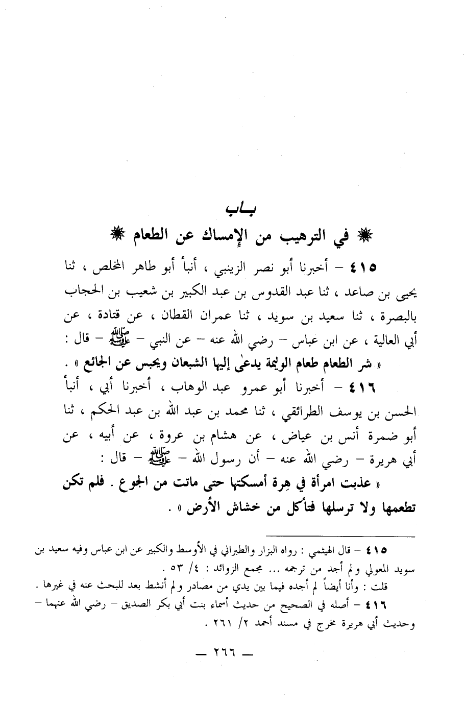 415- أخبرنا أبو نصر الزينبي، أنبأ أبو طاهر المخلص، ثنا يحيى بن صاعد، ثنا عبد القدوس بن عبد الكبير بن شعيب بن الحجاب بالبصرة، ثنا سعيد بن سويد، ثنا عمران القطان، عن قتادة، عن أبي العالية، عن ابن عباس –رضي الله عنه- عن النبي صلى الله عليه وسلم قال: