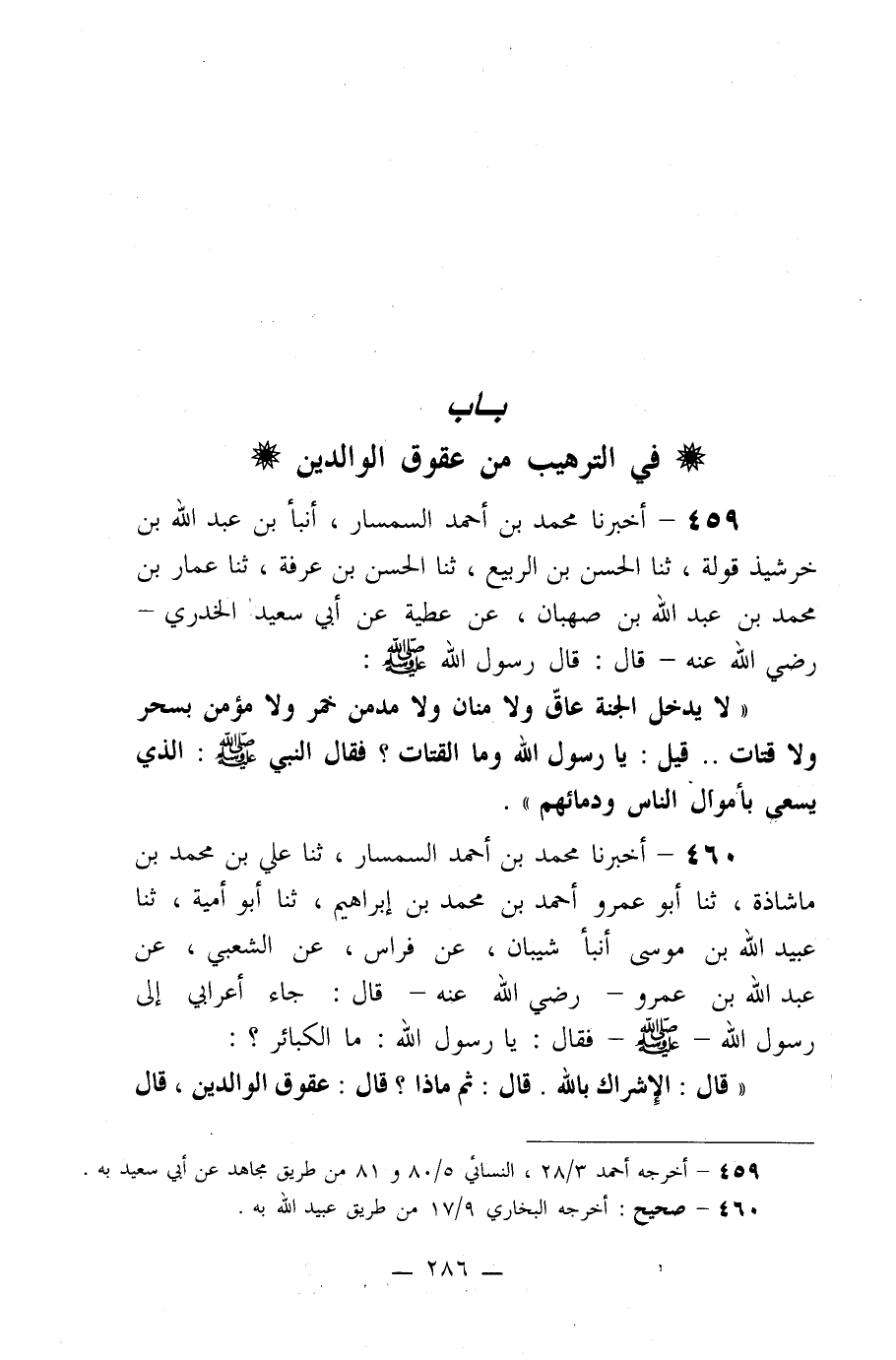 باب في الترهيب من عقوق الوالدين