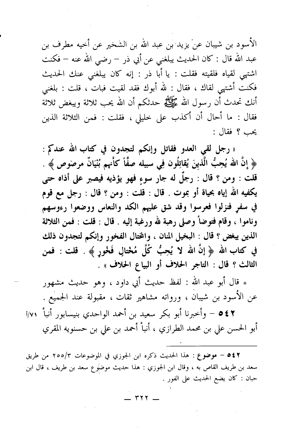 542- وأخبرنا أبو بكر سعيد بن أحمد الواحدي بنيسابور أنبأ أبو الحسن علي بن محمد الطرازي، أنبأ أحمد بن علي بن حسنويه المقري -[323]- ثنا أبو محمد عبد الله بن محمد بن إبراهيم الجيشاني بحديث غريب غريب، ثنا محمد بن يوسف أبو قرة عن سعد القاص. عن زيد بن علي، عن أبيه، عن جده علي بن أبي طالب -رضي الله عنه- عن النبي صلى الله عليه وسلم قال: