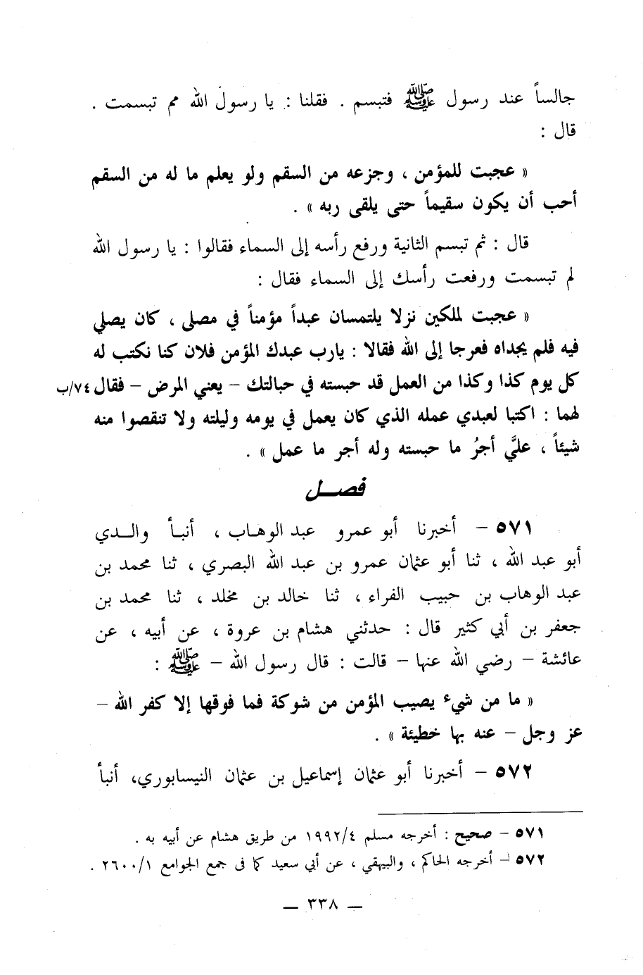 571- أخبرنا أبو عمرو عبد الوهاب، أنبأ والدي أبو عبد الله، ثنا أبو عثمان عمرو بن عبد الله البصري، ثنا محمد بن عبد الوهاب بن حبيب الفراء، ثنا خالد بن مخلد، ثنا محمد بن جعفر بن أبي كثير قال: حدثني هشام بن عروة، عن أبيه، عن عائشة –رضي الله عنها- قالت: قال رسول الله صلى الله عليه وسلم: