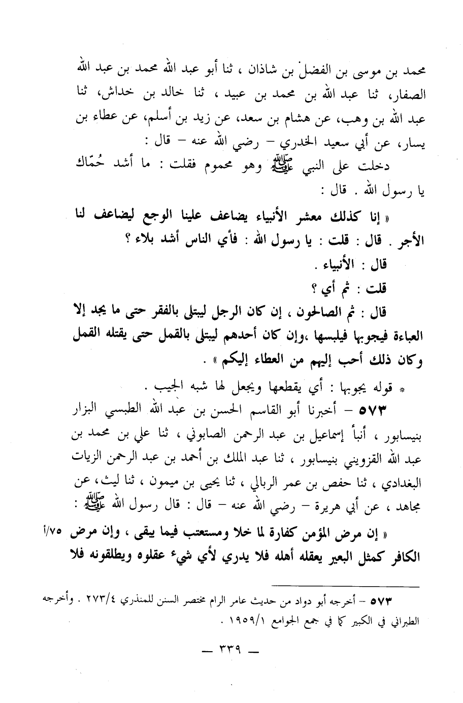 573- أخبرنا أبو القاسم الحسن بن عبد الله الطبسي البزار بنيسابور، أنبأ إسماعيل بن عبد الرحمن الصابوني، ثنا علي بن محمد بن عبد الله القزويني بنيسابور، ثنا عبد الملك بن أحمد بن عبد الرحمن الزيات البغدادي، ثنا حفص بن عمر الربالي، ثنا يحيى بن ميمون، ثنا ليث، عن مجاهد، عن أبي هريرة -رضي الله عنه- قال: قال رسول الله صلى الله عليه وسلم:
