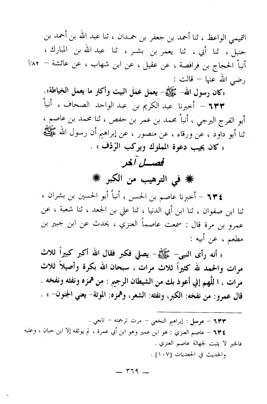 633- أخبرنا عبد الكريم بن عبد الواحد الصحاف، أنبأ أبو الفرج البرجي، أنبأ محمد بن عمر بن حفص، ثنا محمد بن عاصم، ثنا أبو داود، عن ورقاء، عن منصور، عن إبراهيم أن رسول الله صلى الله عليه وسلم: