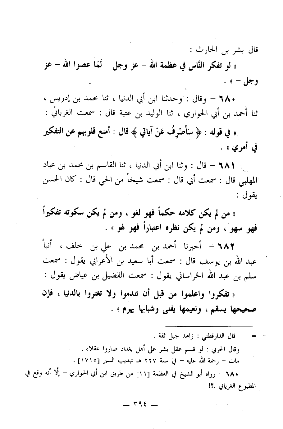 680- وقال وحدثنا ابن أبي الدنيا، ثنا محمد بن إدريس، ثنا أحمد بن أبي الحواري، ثنا الوليد بن عتبة قال: سمعت الغربائي: