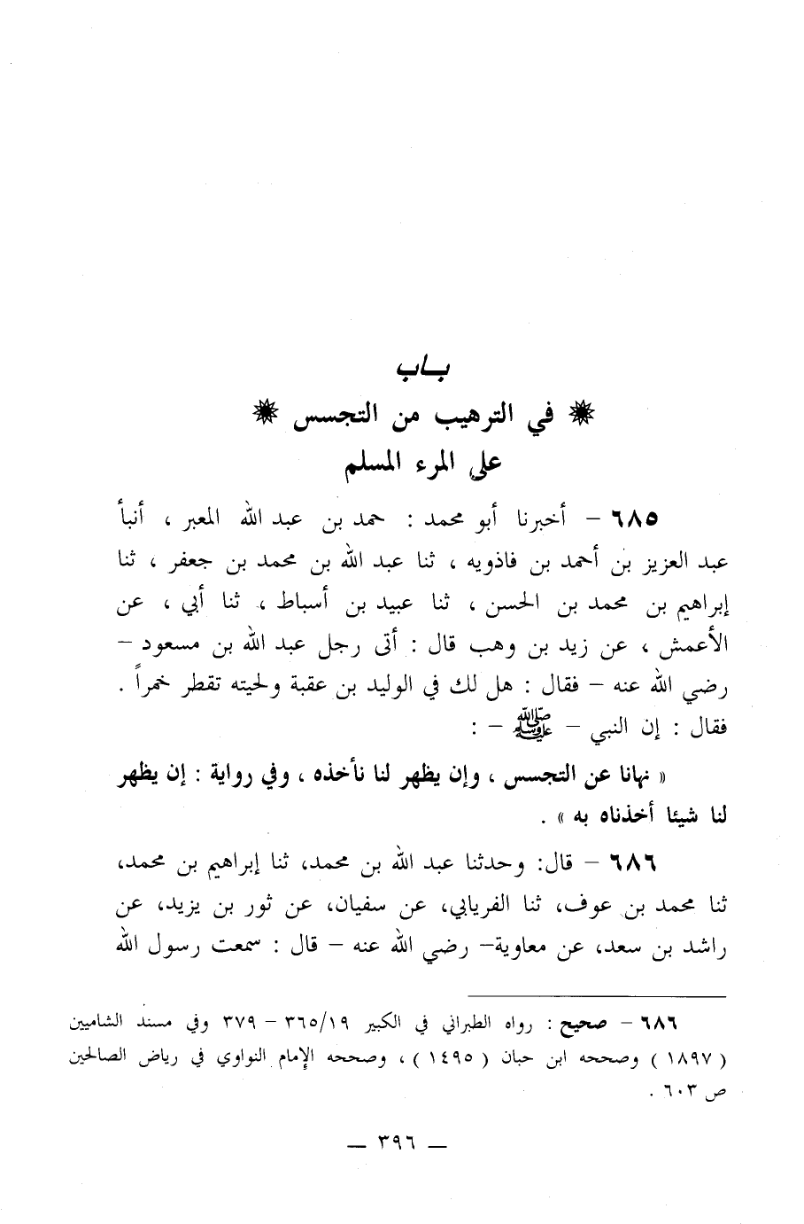 685- أخبرنا أبو محمد: حمد بن عبد الله المعبر، أنبأ عبد العزيز بن أحمد بن فاذويه، ثنا عبد الله بن محمد بن جعفر، ثنا إبراهيم بن محمد بن الحسن، ثنا عبيد بن أسباط، ثنا أبي، عن الأعمش، عن زيد بن وهب قال: أتى رجل عبد الله بن مسعود –رضي الله عنه- فقال: هل لك في الوليد بن عقبة ولحيته تقطر خمراً. فقال: إن النبي صلى الله عليه وسلم: