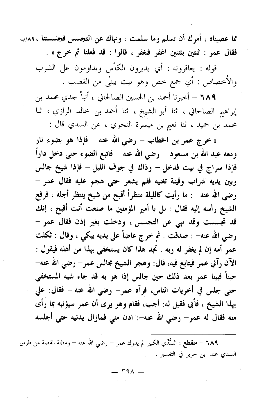 689- أخبرنا أحمد بن الحسين الصالحاني، أنبأ جدي محمد بن إبراهيم الصالحاني، ثنا أبو الشيخ، ثنا أحمد بن خالد الرازي، ثنا محمد بن حميد، ثنا نعيم بن ميسرة النحوي، عن السدي قال: