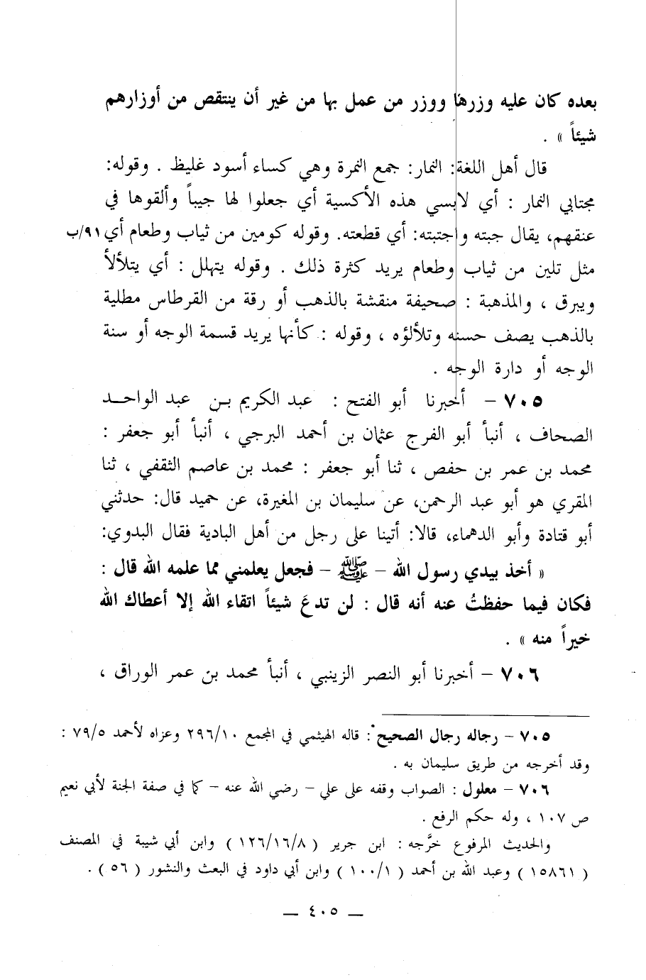 705- أخبرنا أبو الفتح: عبد الكريم بن عبد الواحد الصحاف، أنبأ أبو الفرج عثمان بن أحمد البرجي، أنبأ أبو جعفر: محمد بن عمر بن حفص، ثنا أبو جعفر: محمد بن عاصم الثقفي، ثنا المقري هو أبو عبد الرحمن، عن سليمان بن المغيرة، عن حميد قال: حدثني أبو قتادة وأبو الدهماء، قالا: أتينا على رجل من أهل البادية فقال البدوي: