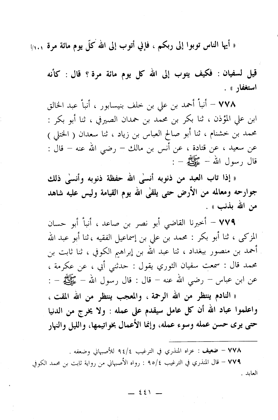 778- أنبأ أحمد بن علي بن خلف بنيسابور، أنبأ عبد الخالق بن علي المؤذن، ثنا بكر بن محمد بن حمدان الصيرفي، ثنا أبو بكر: محمد بن خشنام، ثنا أبو صالح العباس بن زياد، ثنا سعدان (الختلي) عن سعيد، عن قتادة، عن أنس بن مالك –رضي الله عنه- قال: قال رسول الله صلى الله عليه وسلم: