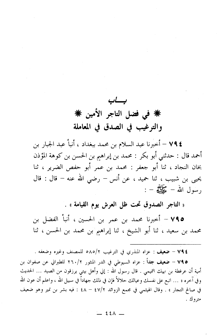 باب في فضل التاجر الأمين والترغيب في الصدق في المعاملة