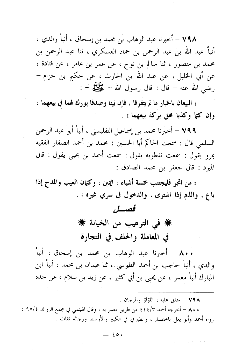 فصل في الترهيب من الخيانة في المعاملة والحلف في التجارة