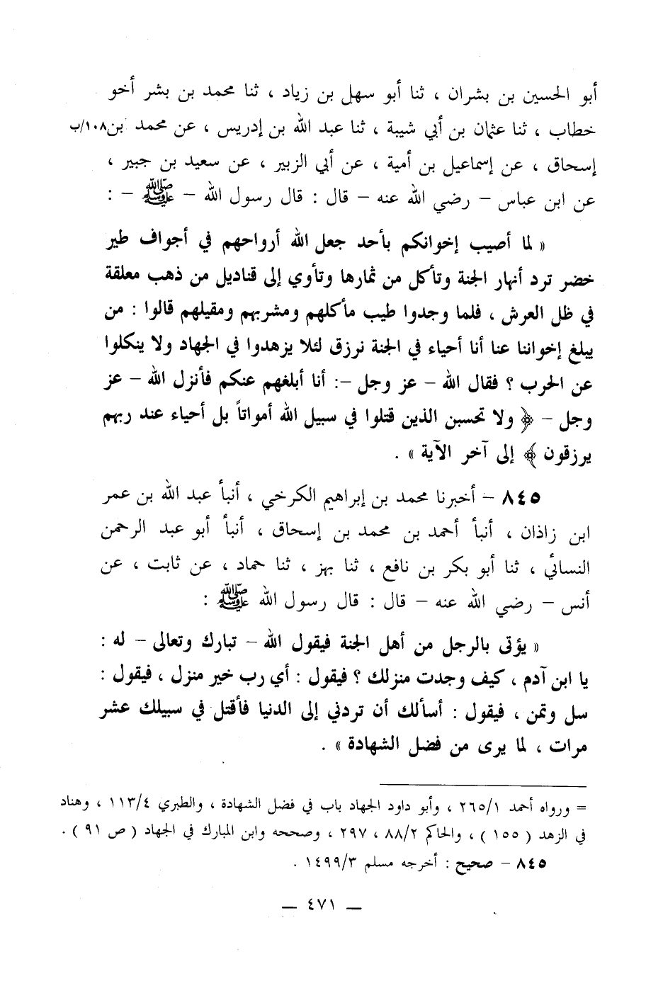 845- أخبرنا محمد بن إبراهيم الكرخي، أنبأ عبد الله بن عمر بن زاذان، أنبأ أحمد بن محمد بن إسحاق، أنبأ أبو عبد الرحمن النسائي، ثنا أبو بكر بن نافع، ثنا بهز، ثنا حماد، عن ثابت، عن أنس –رضي الله عنه- قال: قال رسول الله صلى الله عليه وسلم: