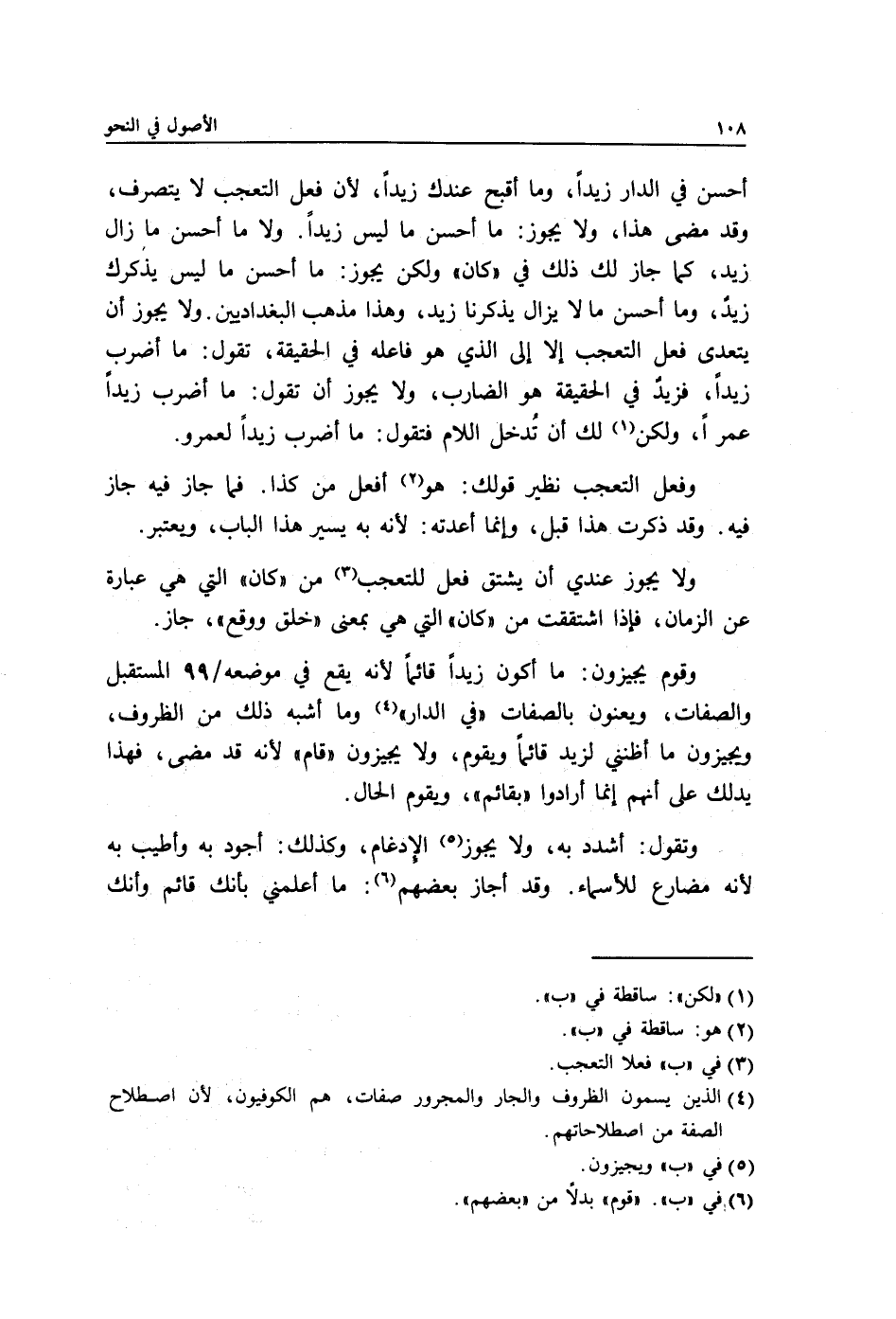 ولا يجوز عندي أن يشتق فعل للتعجب3 من "كان" التي هي عبارة عن الزمان, فإذا اشتققت من "كان" التي هي بمعنى "خلق ووقع", جاز.