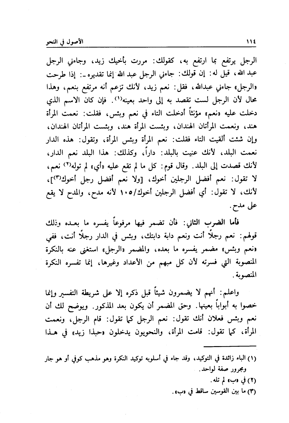 واعلم: أنهم لا يضمرون شيئًا قبل ذكره إلا على شريطة التفسير وإنما خصوا به أبوابًا بعينها. وحق المضمر أن يكون بعد المذكور. ويوضح لك أن نعم وبئس فعلان أنك تقول: نعم الرجل كما تقول: قام الرجل, ونعمت المرأة كما تقول: قامت المرأة, والنحويون يدخلون "حبذا زيد" في هذا