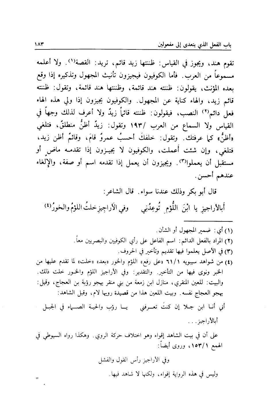2 المراد بالفعل الدائم: اسم الفاعل على رأي الكوفيين والبصريين معا.