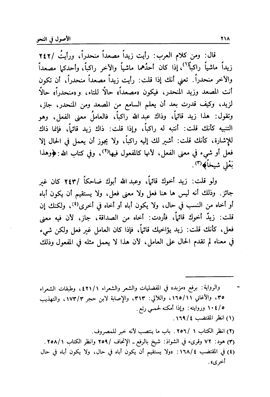 4 في المقتضب 4/ 168: "ولا يستقيم أن يكون أباه في حال، ولا يكون أباه في حال أخرى".