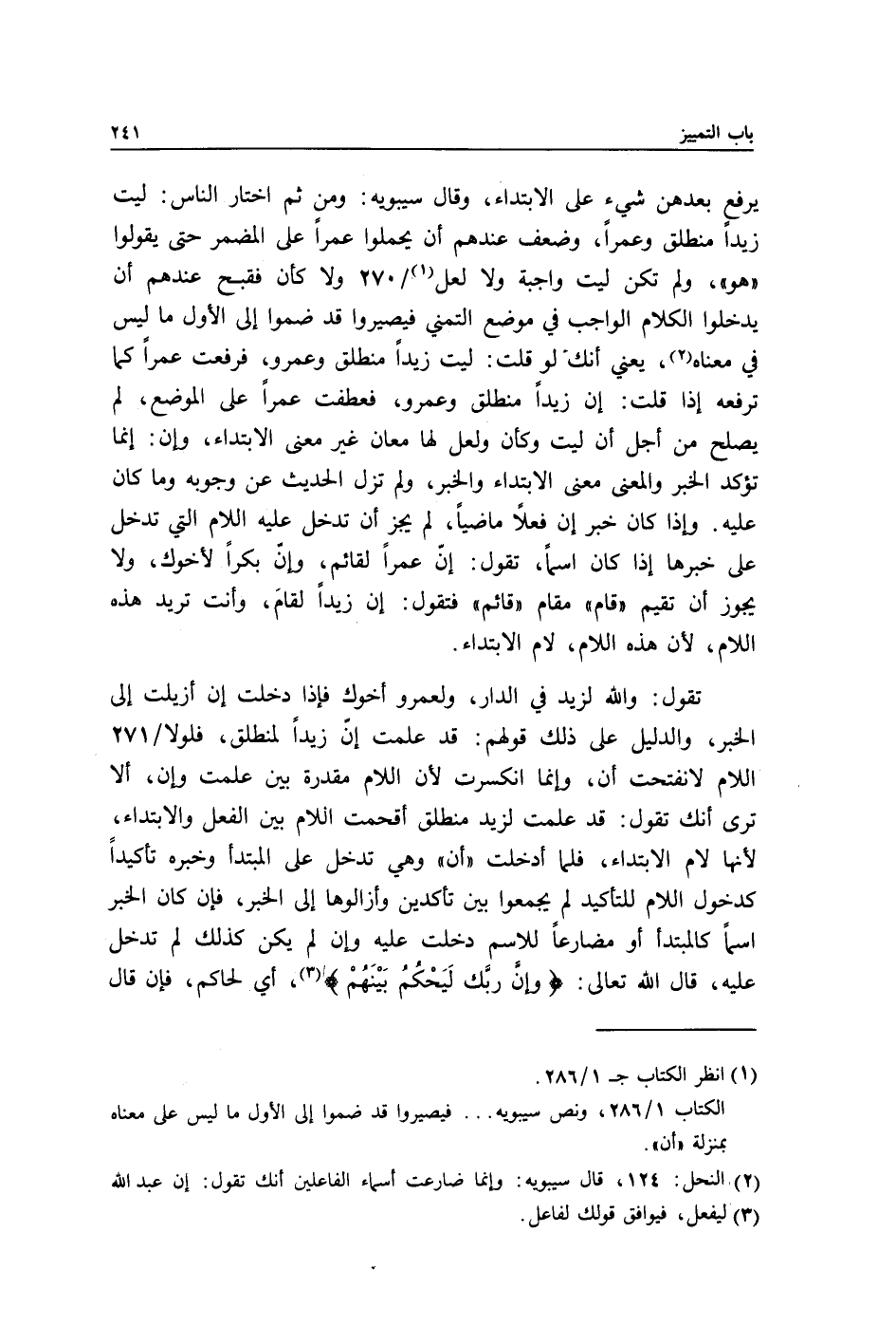 2 النحل: 124، قال سيبويه: وإنما ضارعت أسماء الفاعلين أنك تقول: إن عبد الله.