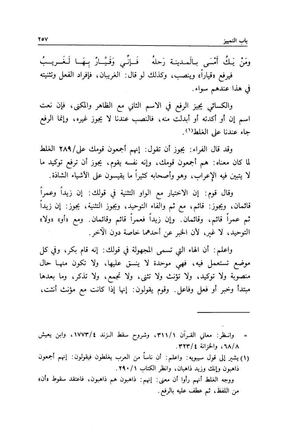 1 يشير إلى قول سيبويه: واعلم: أن ناسا من العرب يغلطون فيقولون: إنهم أجمعون ذاهبون وإنك وزيد ذاهبان، وانظر الكتاب 1/ 290.
