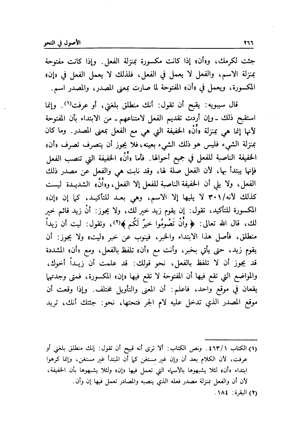 1 الكتاب 1/ 463. ونص الكتاب: ألا ترى أنه قبيح أن تقول: إنك منطلق بلغني أو عرفت، لأن الكلام بعد أن وإن غير مستغن كما أن المبتدأ غير مستغن، وإنما كرهوا ابتداء "أن" يشبهوها بالأسماء التي تعمل فيها "إن" ولئلا يشبهوها بأن الخفيفة، لأن أن والفعل بمنزلة مصدر فعله الذي ينصبه والمصادر تعمل فيها إن وأن.