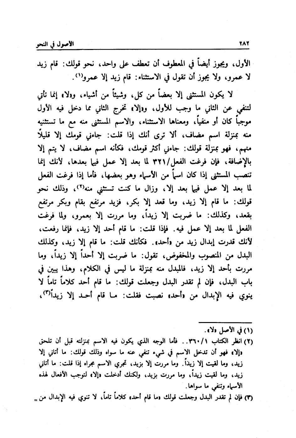 3 فإن لم تقدر البدل, وجعلت قولك "ما قام أحد" كلاما تاما, لا تنوي فيه الإبدال من "أحد" ثم استثنيت، نصبت فقلت: ما قام أحد إلا زيدا فعلى هذا يكون للزوم النصب بعد النفي شيئان التراخي وعروض الاستثناء. وانظر التذييل والتكميل لأبي حيان 4/ 247.