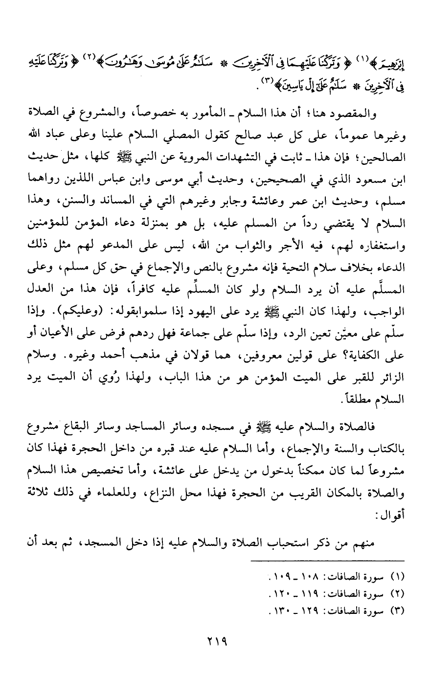 إِبْرَاهِيمَ} 1 {وَتَرَكْنَا عَلَيهِمَا فِي الْآخِرِينَ * سَلامٌ عَلَى مُوسَى وَهَارُونَ} 2 {وَتَرَكْنَا عَلَيْهِ فِي الْآخِرِينَ * سَلامٌ عَلَى إِلْ يَاسِينَ} 3.