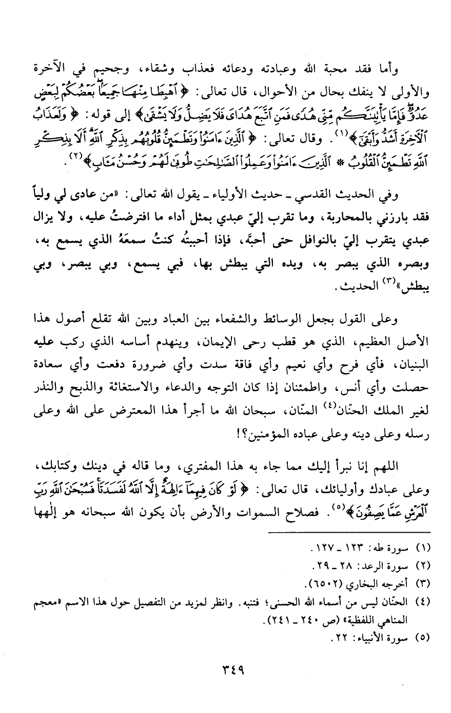 اللهم إنا نبرأ إليك مما جاء به هذا المفتري، وما قاله في دينك وكتابك، وعلى عبادك وأوليائك، قال تعالى: {لَوْ كَانَ فِيهِمَا آلِهَةٌ إِلَّا اللَّهُ لَفَسَدَتَا فَسُبْحَانَ اللَّهِ رَبِّ الْعَرْشِ عَمَّا يَصِفُونَ} 5. فصلاح السموات والأرض بأن يكون الله سبحانه هو إلهها