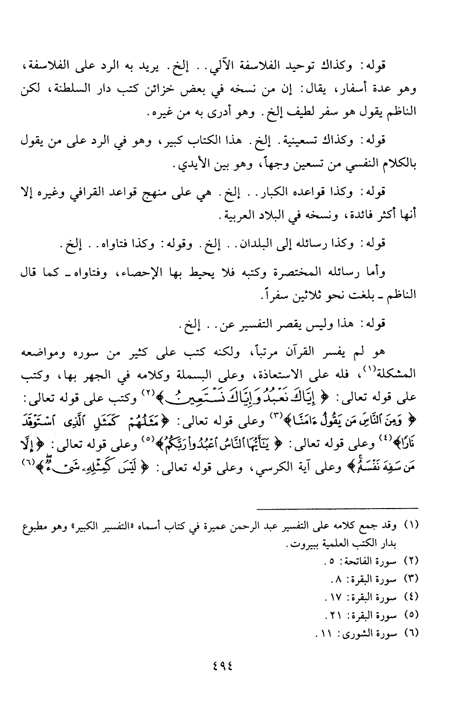 قوله: وكذاك تسعينية. إلخ. هذا الكتاب كبير، وهو في الرد على من يقول بالكلام النفسي من تسعين وجهاً، وهو بين الأيدي.