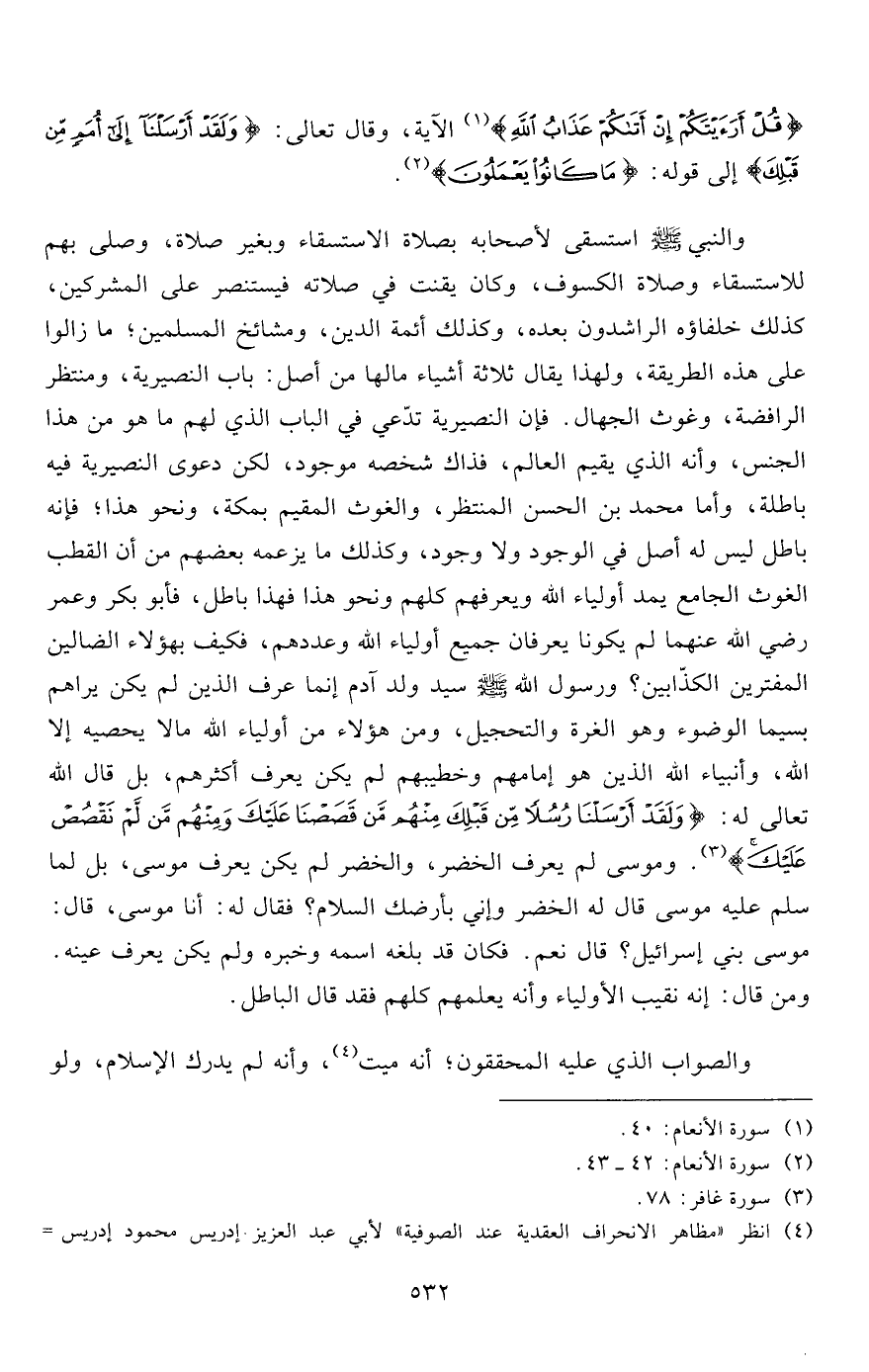 4 انظر "مظاهر الانحراف العقدية عند الصوفية" لأبي عبد العزيز إدريس محمود إدريس (2/ 531- وما بعدها) ط. مكتبة الرشد بالرياض.