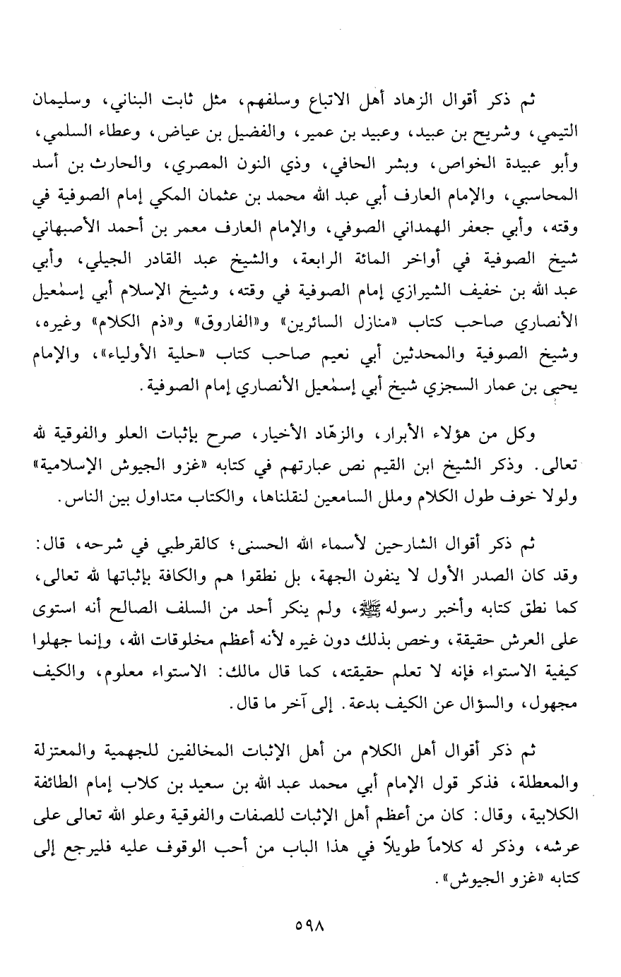 وكل من هؤلاء الأبرار، والزهّاد الأخيار، صرح بإثبات العلو والفوقية لله تعالى. وذكر الشيخ ابن القيم نص عبارتهم في كتابه "غزو الجيوش الإسلامية" ولولا خوف طول الكلام وملل السامعين لنقلناها، والكتاب متداول بين الناس.