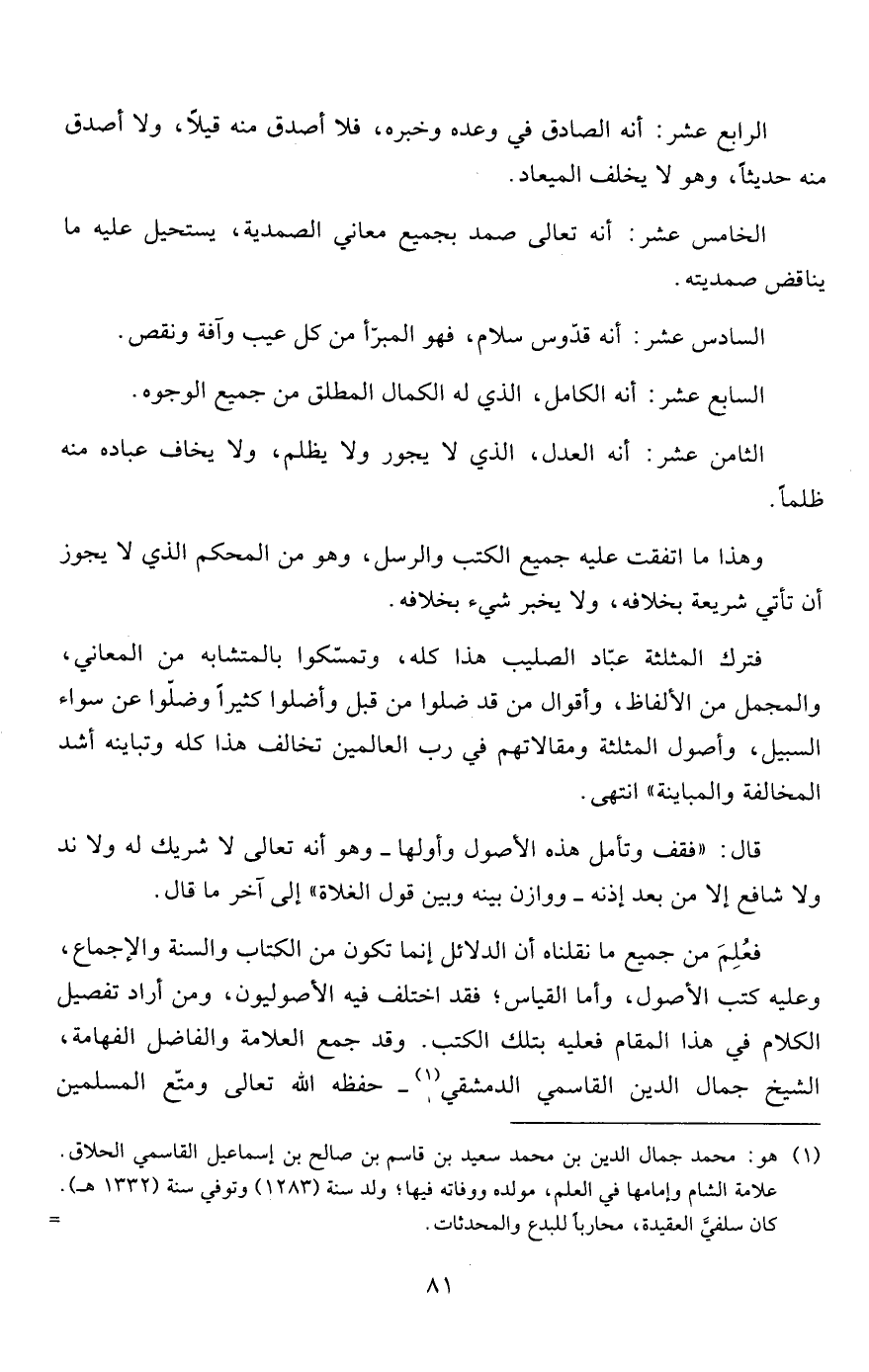 1 هو: محمد جمال الدين بن محمد سعيد بن قاسم بن صالح بن إسماعيل القاسمي الحلاق. علامة الشام وإمامها في العلم، مولده ووفاته فيها؛ ولد سنة (1283) وتوفي سنة (1332هـ) .