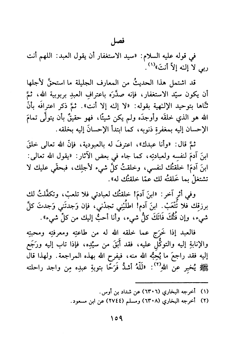 في قوله عليه السلام: "سيد الاستغفار أن يقول العبد: اللهم أنت ربي لا إله إلاّ أنتَ" (1).