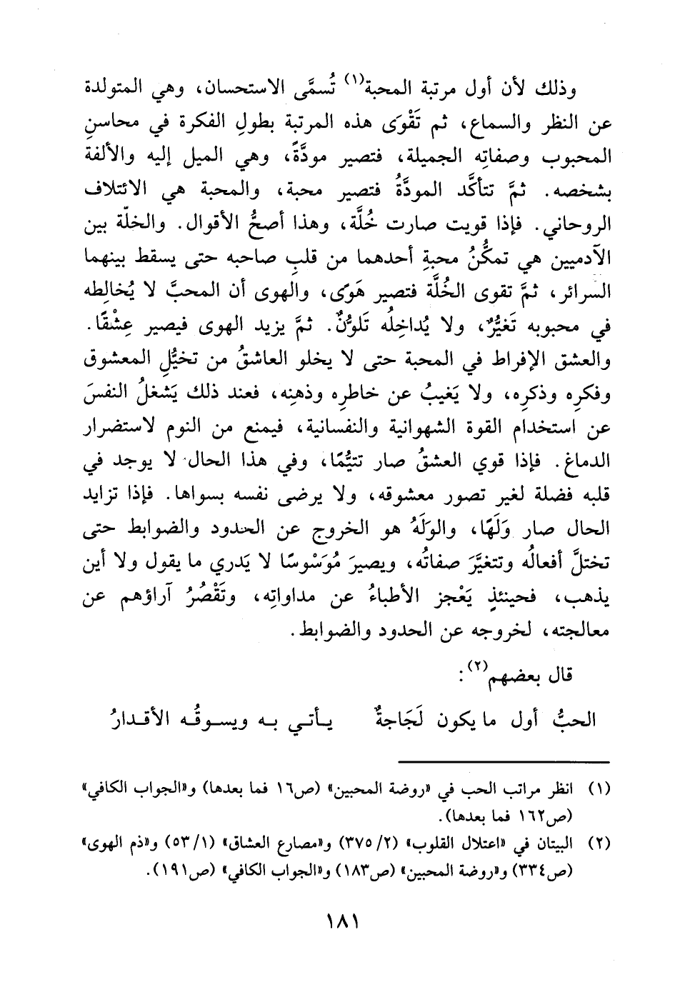 (1) انظر مراتب الحب في "روضة المحبين" (ص 16 فما بعدها) و"الجواب الكافي" (ص 162 فما بعدها).