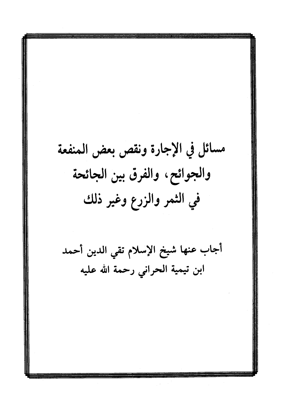 مسائل في الإجارة ونقص بعض المنفعة والجوائح، والفرق بين الجائحة في الثمر والزرع وغير ذلك
