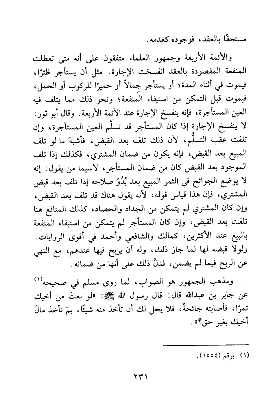 ومذهب الجمهور هو الصواب، لما روى مسلم في صحيحه (1) عن جابر بن عبد الله قال: قال رسول الله - صَلَّى اللَّهُ عَلَيْهِ وَسَلَّمَ -: "لو بعتَ من أخيك تمرًا، فأصابته جائحةٌ، فلا يحل لك أن تأخذ منه شيئًا، بمَ تأخذ مالَ أخيك بغير حق؟ ".