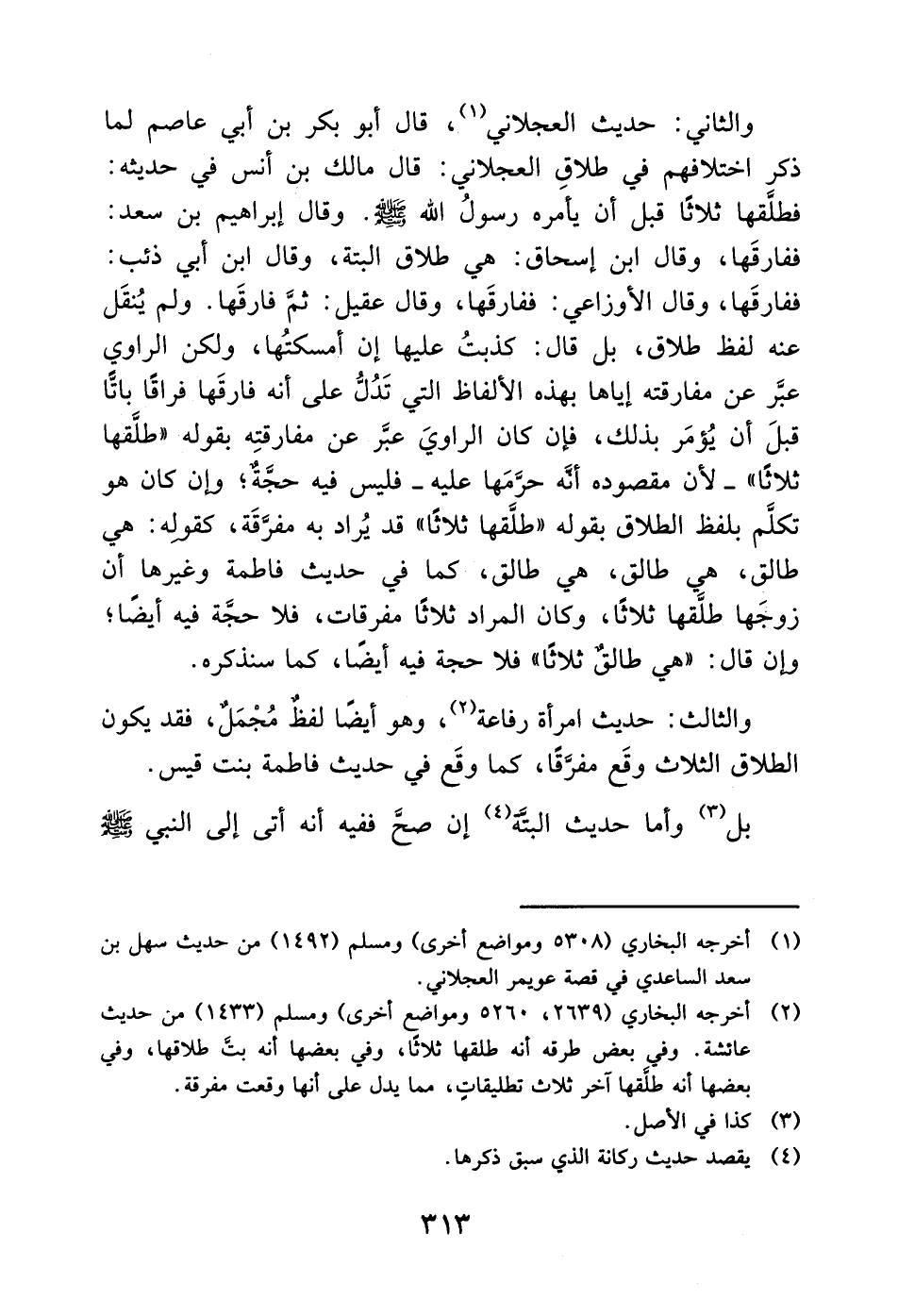 (4) يقصد حديث ركانة الذي سبق ذكرها.